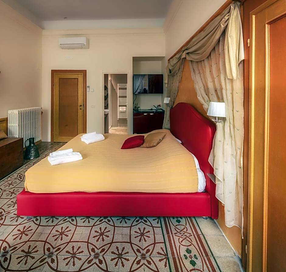 This room features a seating area with a work desk, a 40-inch flat-screen satellite TV and a small refrigerator. An private bathroom is also available.